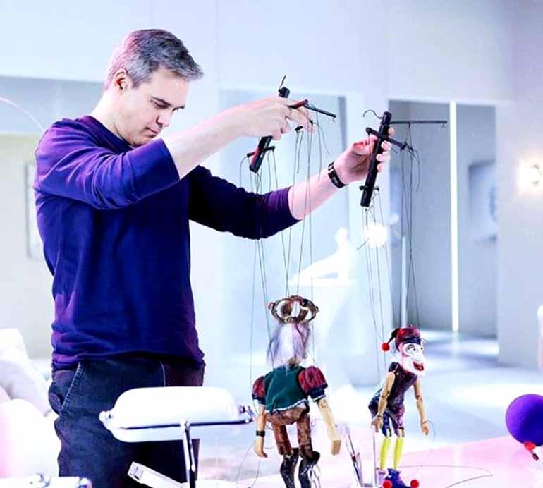 Sr.Pandleton ensina Poliana a mexer com marionetes
